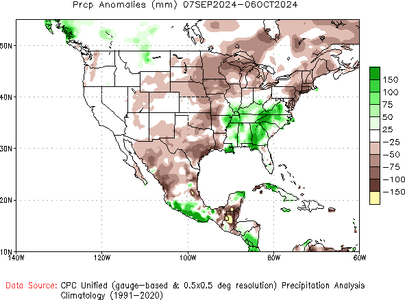 The precipitation anomaly for most of Sheridan County was 25-50 mm (1 - 2 inches) less precipitation for September than compared to other years.