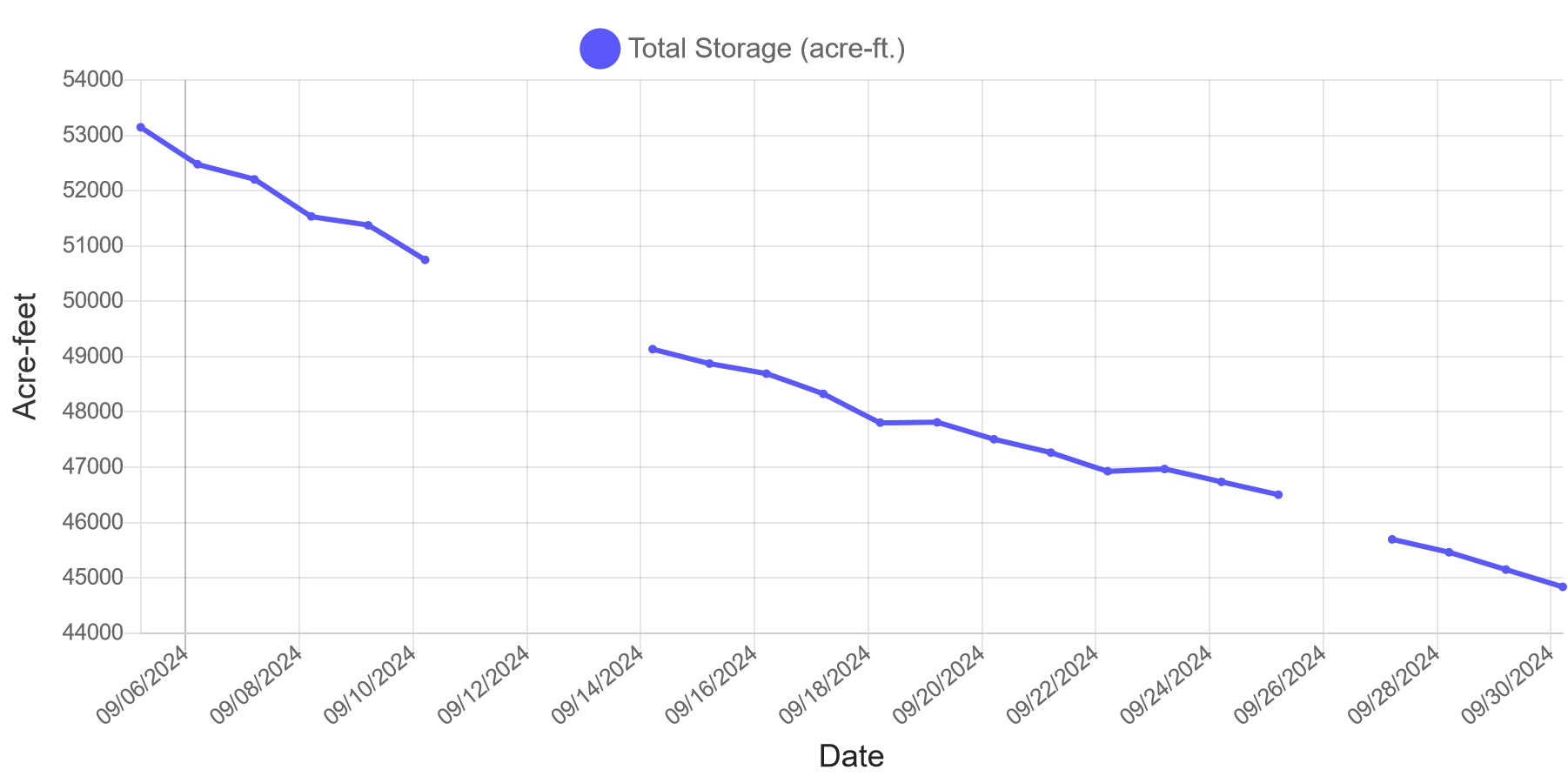 As of October 1, Lake DeSmet has a total of 196,387 acre-feet in storage, a decrease of approximately 5,000 acre-feet since September.