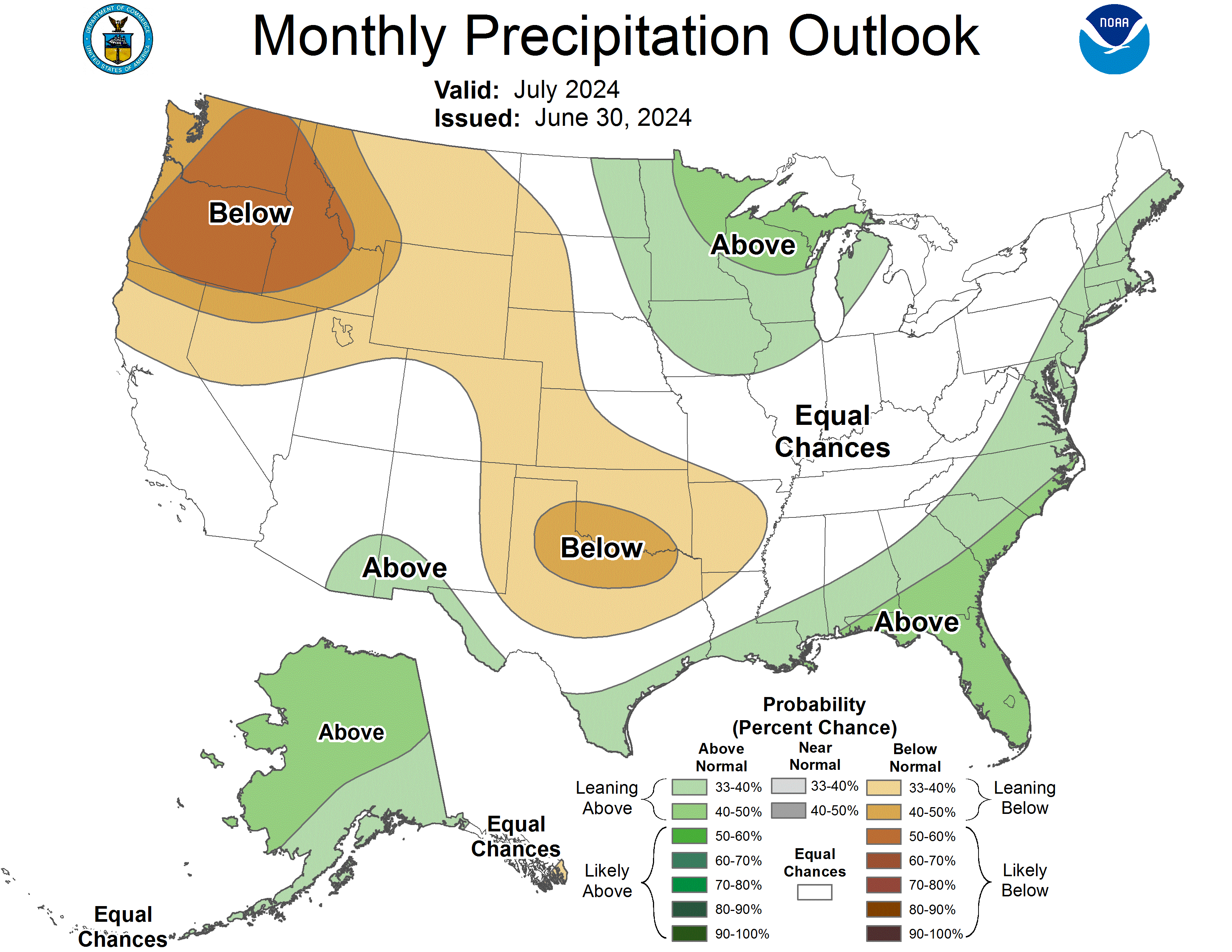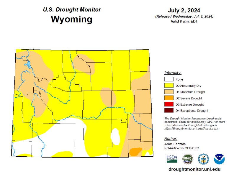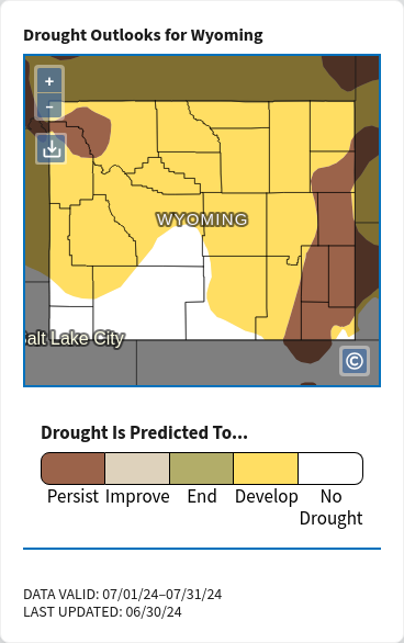 Looking into July, NOAA reports: "Persistence is favored for the existing drought across the region, with the potential for additional development in western Dakotas, much of Wyoming and the southeastern portions of the High Plains region, given warmer and drier conditions favored across much of the High Plains during much of July. Additionally, in the climatological context, much of the High Plains region is still in their wettest time of year. However, as July progresses, the drier climatology starts for these western-most areas."1