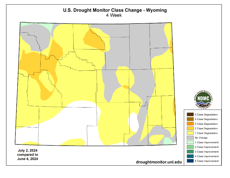 While drought conditions did not improve in Sheridan County, degradation was only season in the Bighorn mountains and foothills. This degradation was Class 1, which is the most minor class of degradation.