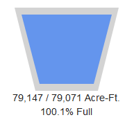 Although the reservoir is still overflowing, water levels decreased over the last month from 80,632 acre-feet to 79,147 acre-feet.