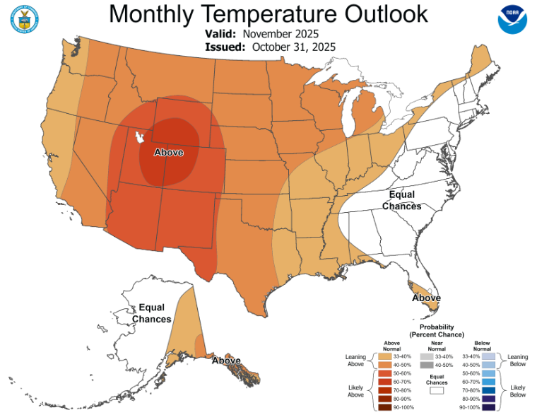 Sheridan county has a "likely above" probability to have higher temperatures in November than normal.