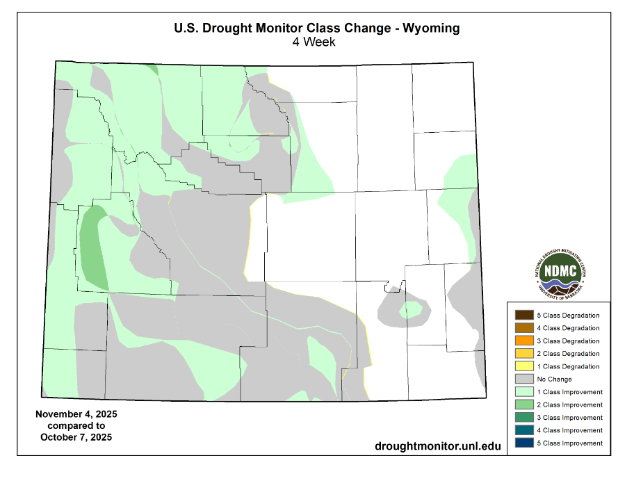 Sheridan county saw a Class 1 improvement along the western edge of the county. Much of the state is seeing improvement in drought conditions.