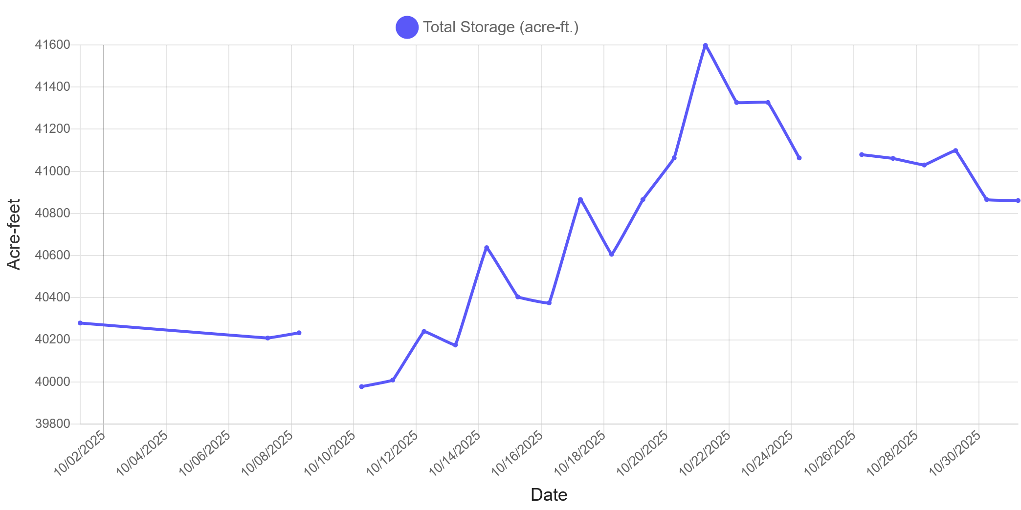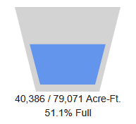 Water levels have remained the same since October, to 40,386 acre-feet. The reservoir is 51.1% full.
