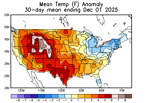 November was 3 to 5 degrees warmer in Sheridan county than most years.