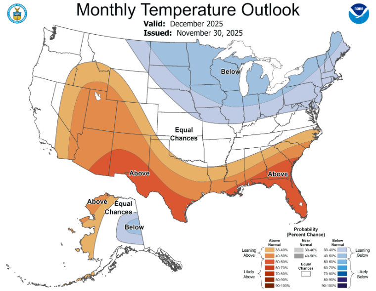 https://www.cpc.ncep.noaa.gov/products/predictions/long_range/lead14/interactive/index.php Explore link above for an Interactive map that displays percentage chance above and below normal for any point in US