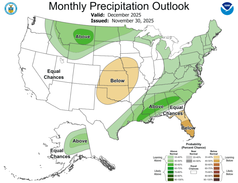 Sheridan has a "likely above" chances outlook for precipitation in December.