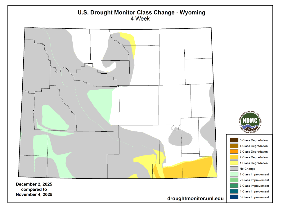 Sheridan county saw a Class 1 degradation along the southwestern corner of the county. Much of the state is conditions remain the same as last month.