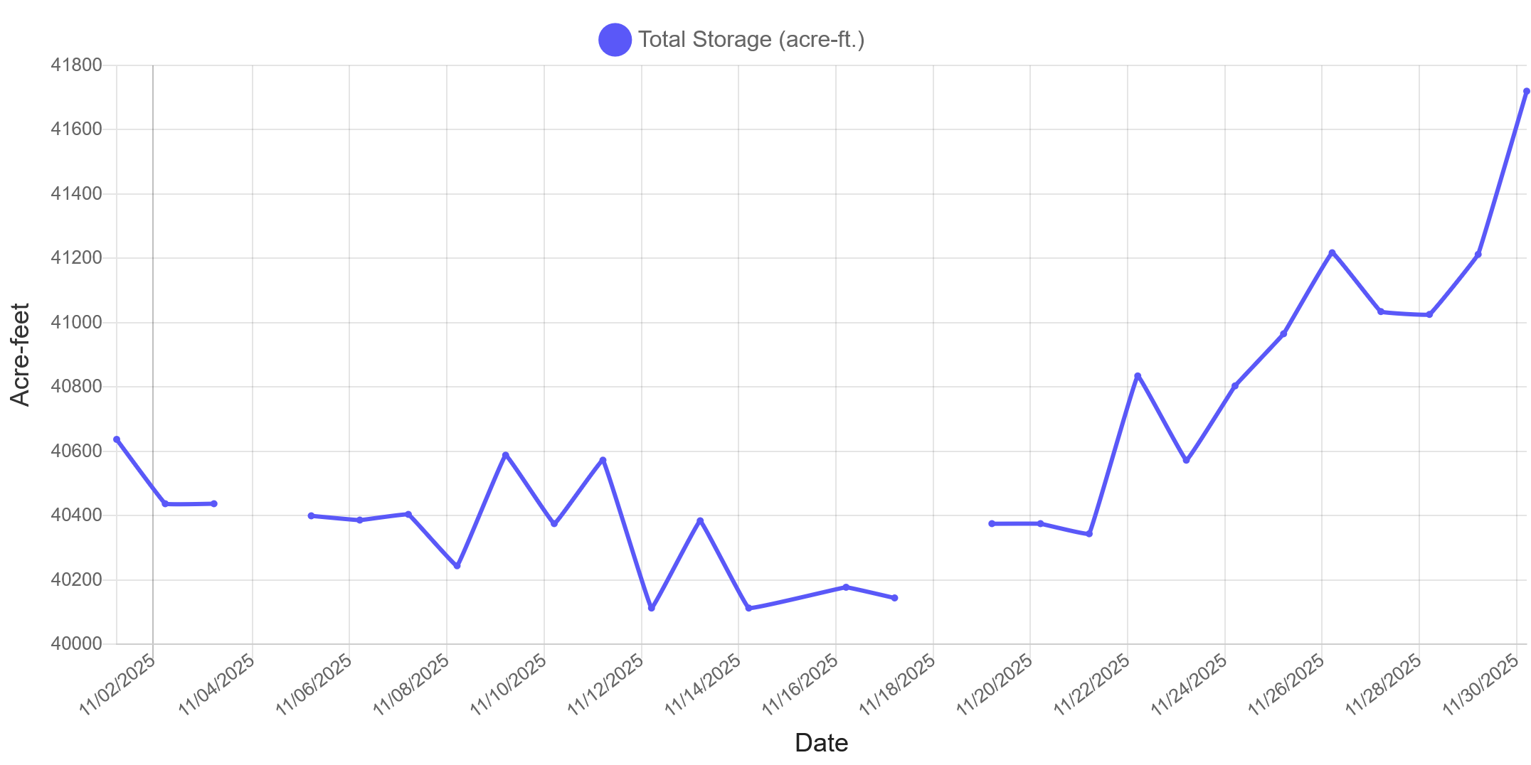| Reservoir | Total Storage (Acre-ft) | Current Storage (Acre-ft) | Percentage of Total Capacity (%) |