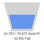 Water levels have increased slightly since November, to 41,757 acre-feet. The reservoir is 52.8% full.