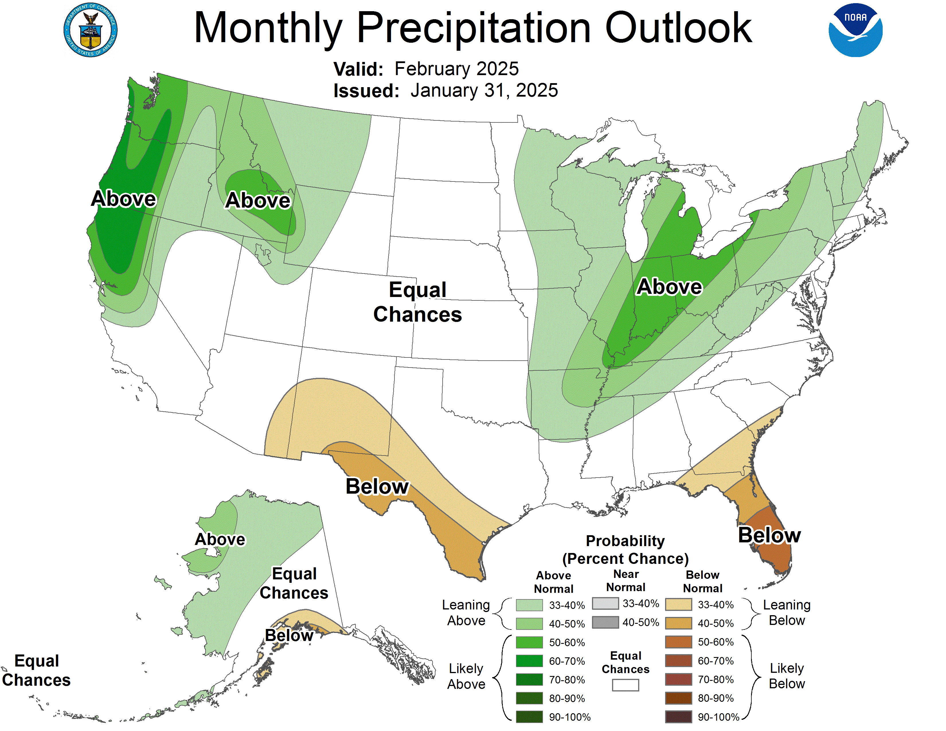 Sheridan has an equal chance of precipitation for February, meaning in line the 30-year average.