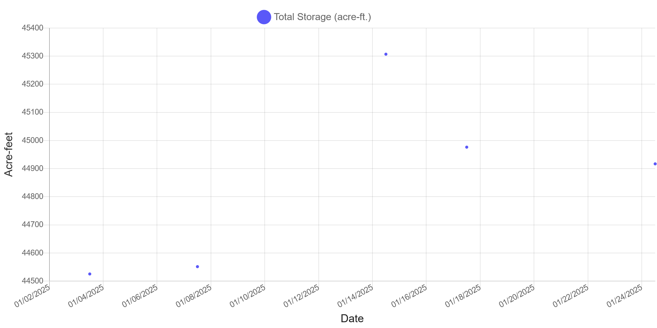 | Reservoir | Total Storage (Acre-ft) | Current Storage (Acre-ft) | Percentage of Total Capacity (%) |