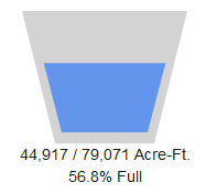 Water levels relatively remained unchanged overall from the last month at 44,917 acre-feet. The reservoir is 56.8% full.