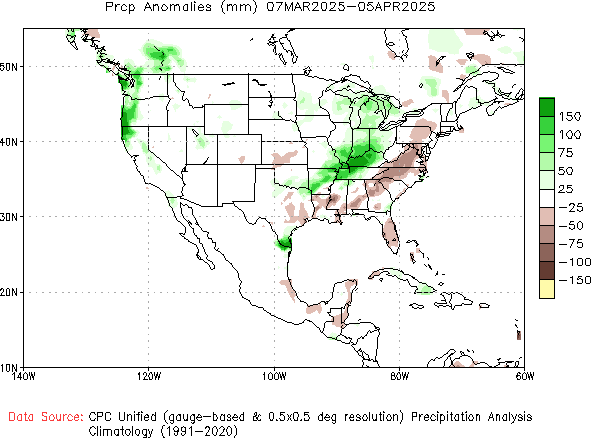 The precipitation anomaly for most of Sheridan County was normal in March.