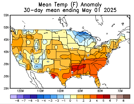 April was 0 to 2 degrees warmer in Sheridan county than most years.