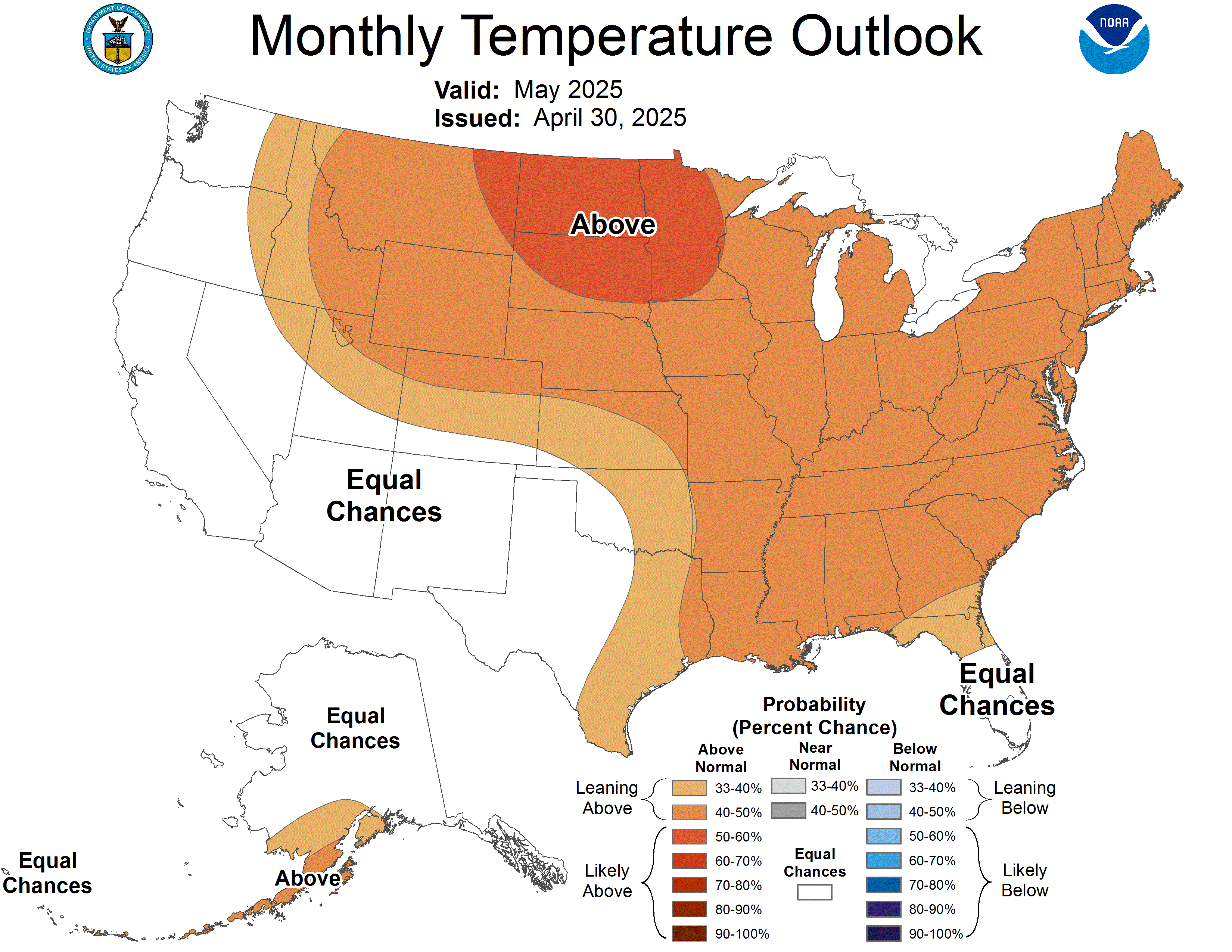 Sheridan county is leaning above to have higher temperatures in May than normal.
