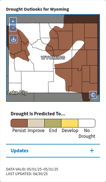 Looking into May, NOAA reports: that the drought will "persist" in most of Sheridan County. Half of Wyoming the drought is forecasted to persist.