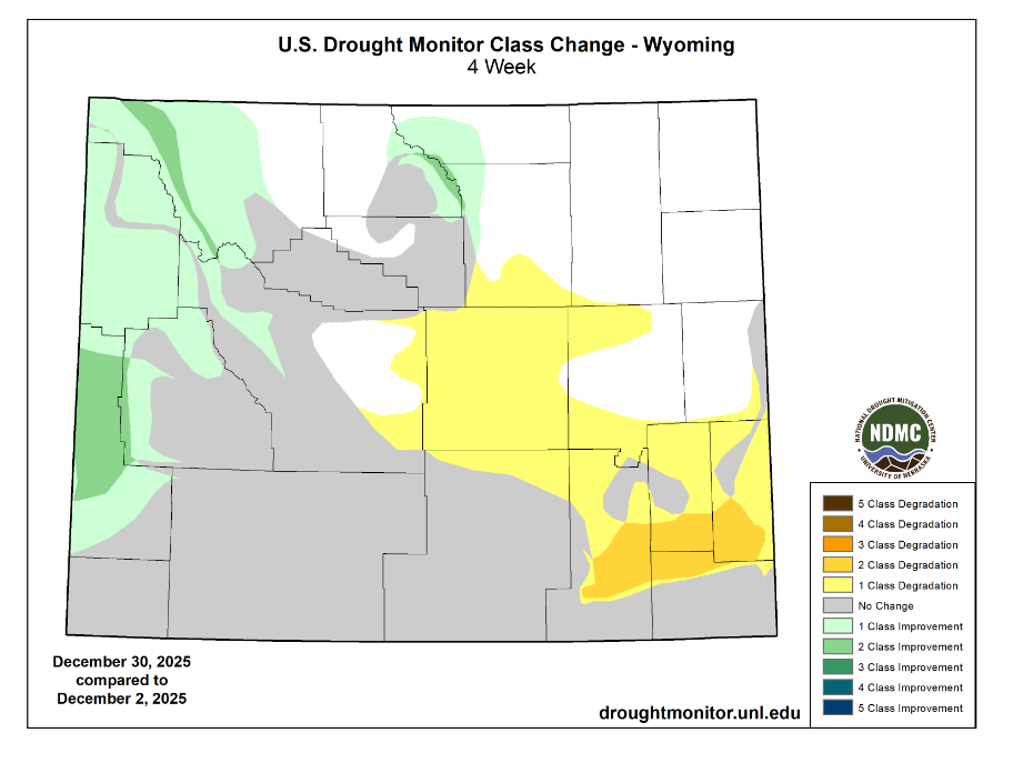 Sheridan county saw a Class 1 improvement along the southwestern corner of the county. Much of the state is conditions remain the same as last month.