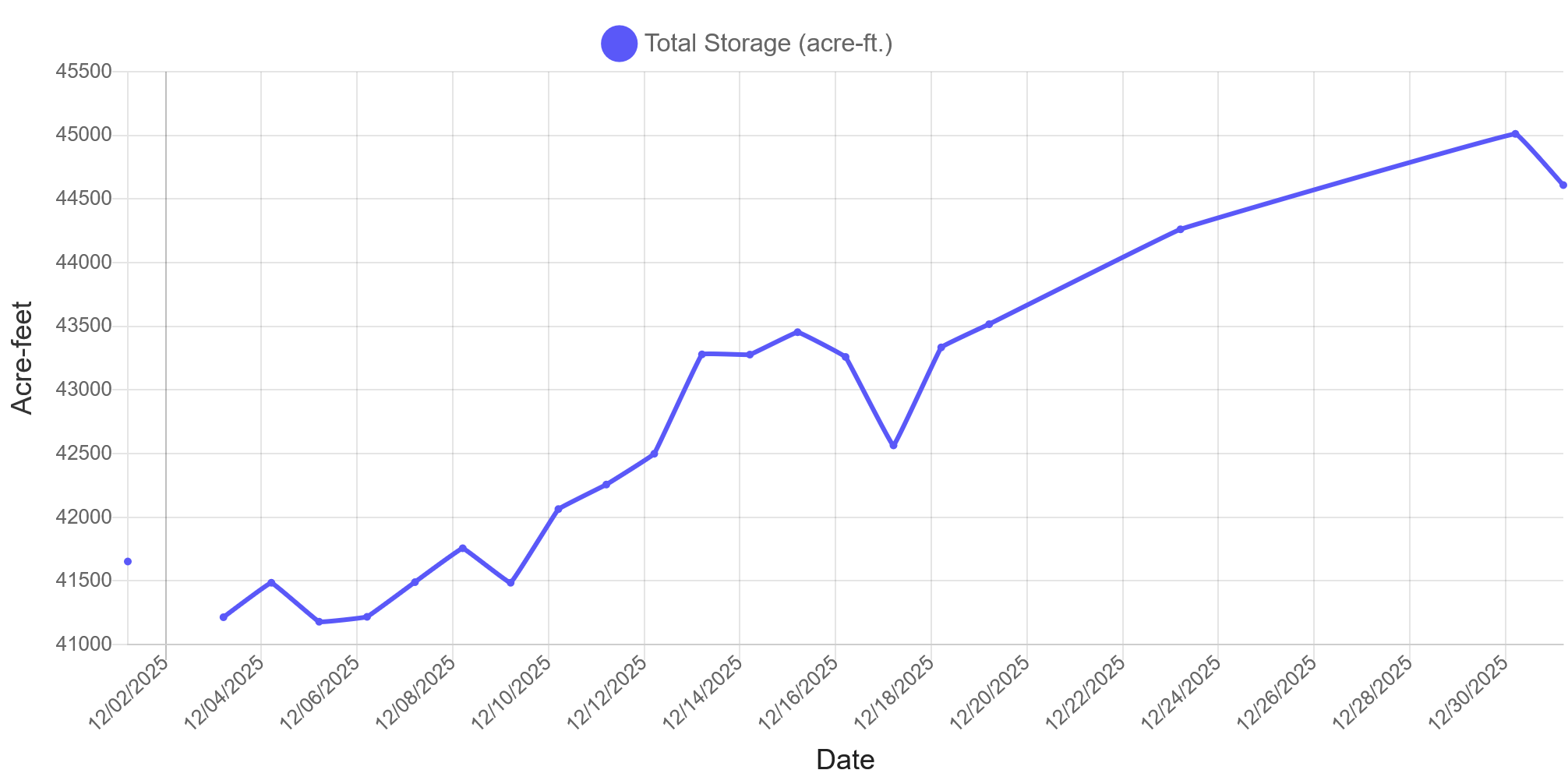 | Reservoir | Total Storage (Acre-ft) | Current Storage (Acre-ft) | Percentage of Total Capacity (%) |