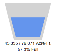 Water levels have increased since December, to 45,335 acre-feet. The reservoir is 57.3% full.