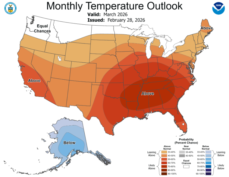 https://www.cpc.ncep.noaa.gov/products/predictions/long_range/lead14/interactive/index.php Explore link above for an Interactive map that displays percentage chance above and below normal for any point in US