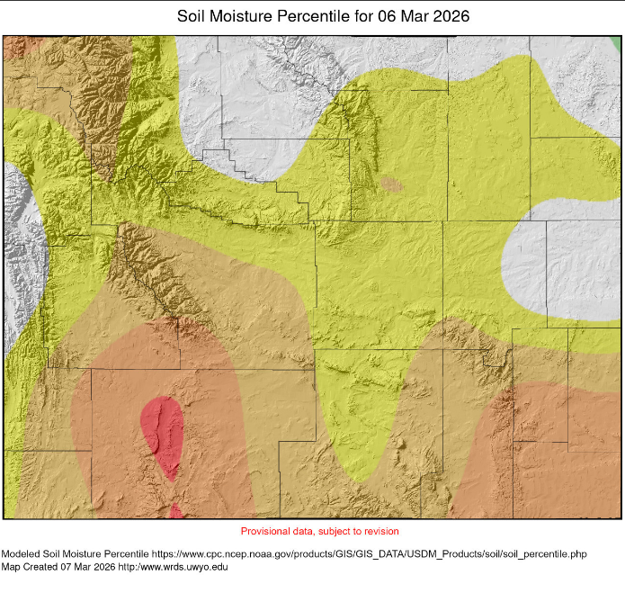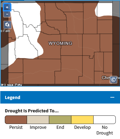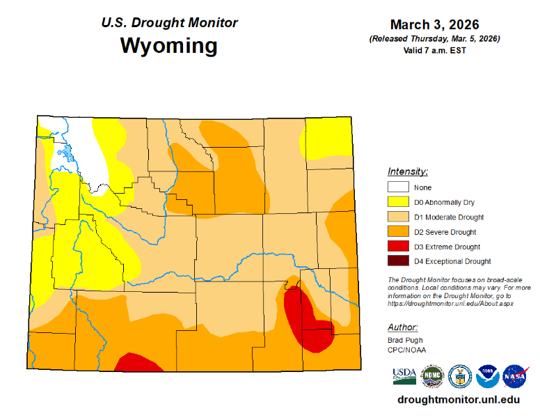 All of Sheridan County is experiencing some level of drought, with more than half classified as Severe Drought. Almost all of Wyoming is experiencing drought conditions, with the southern portion of the state the most dry.