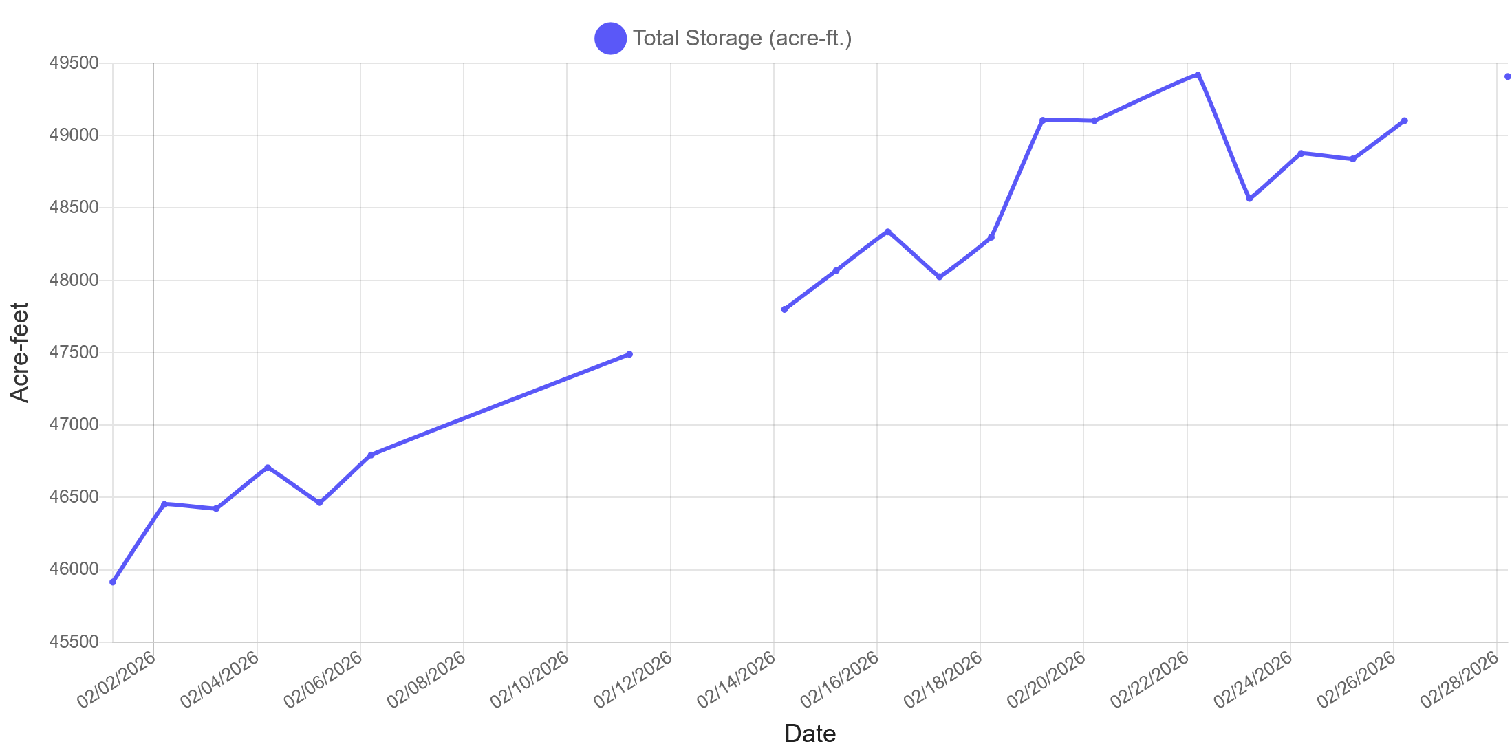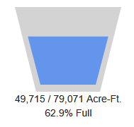 Water levels have increased to 49,715 ac/ft. The reservoir is 62.9% full.