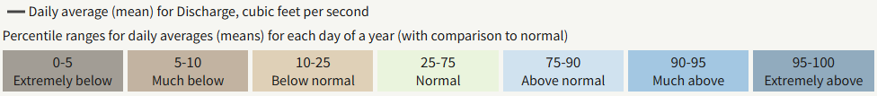 Streamflow is in the very bottom portion of the "Normal" range or 25-75th percentile.